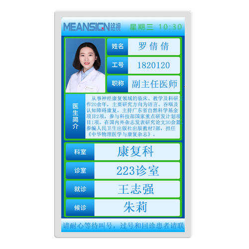 用途:醫生診室門口屏/二級分診屏